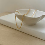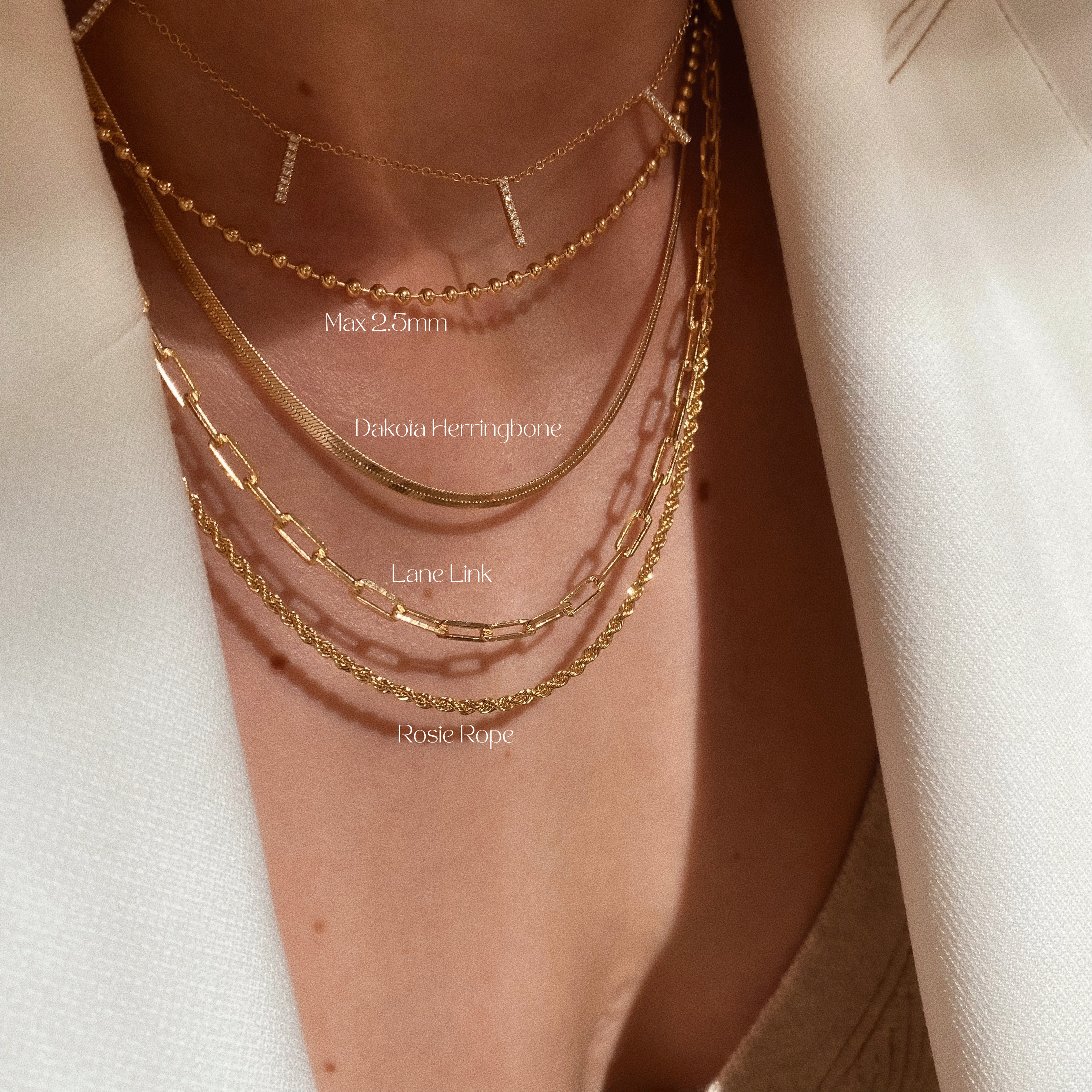 Meet the necklace you’ll never take off. The Rosie Rope chain is a layering staple- she compliments everything and adorns your neck with style and grace. 18K gold filled to total perfection, for real.