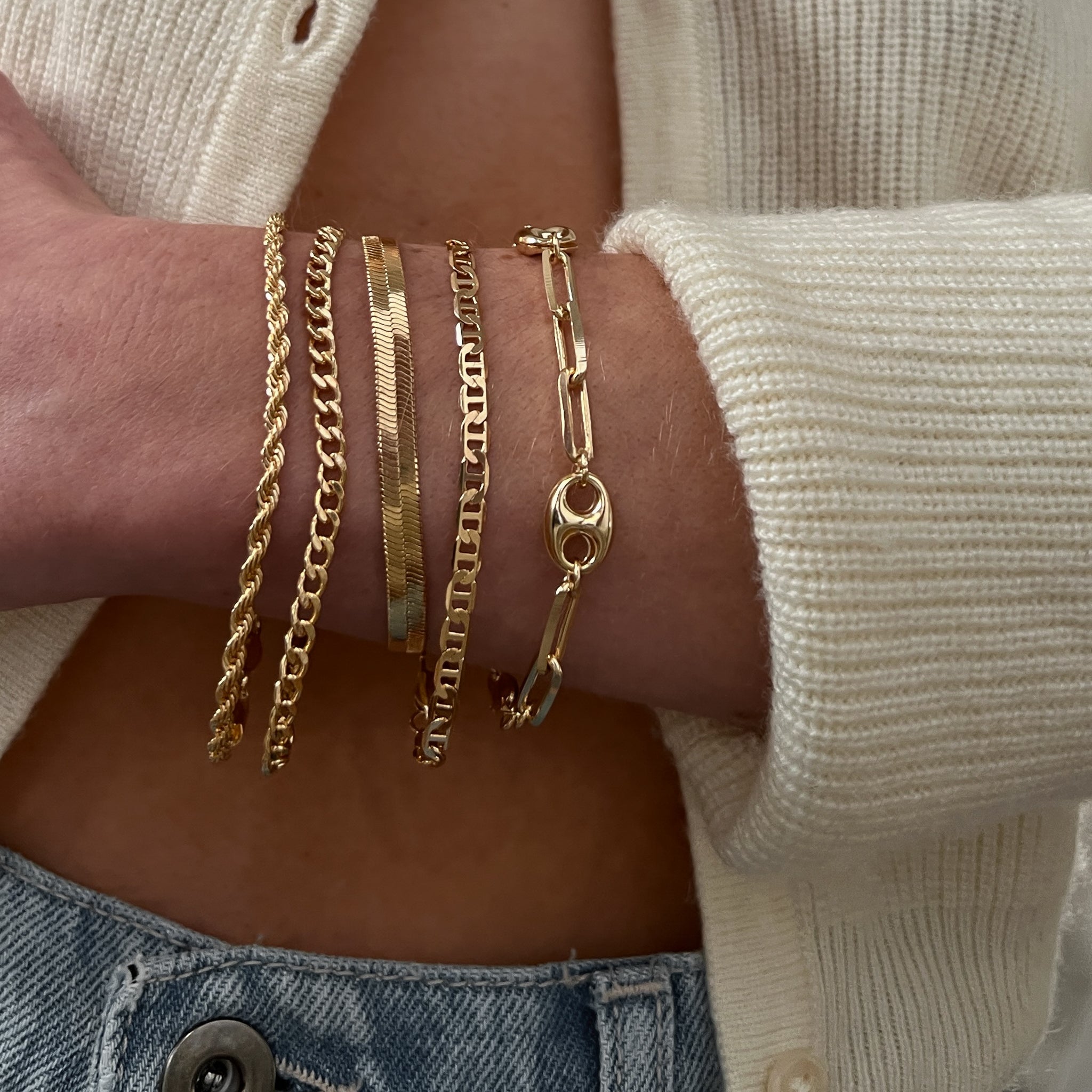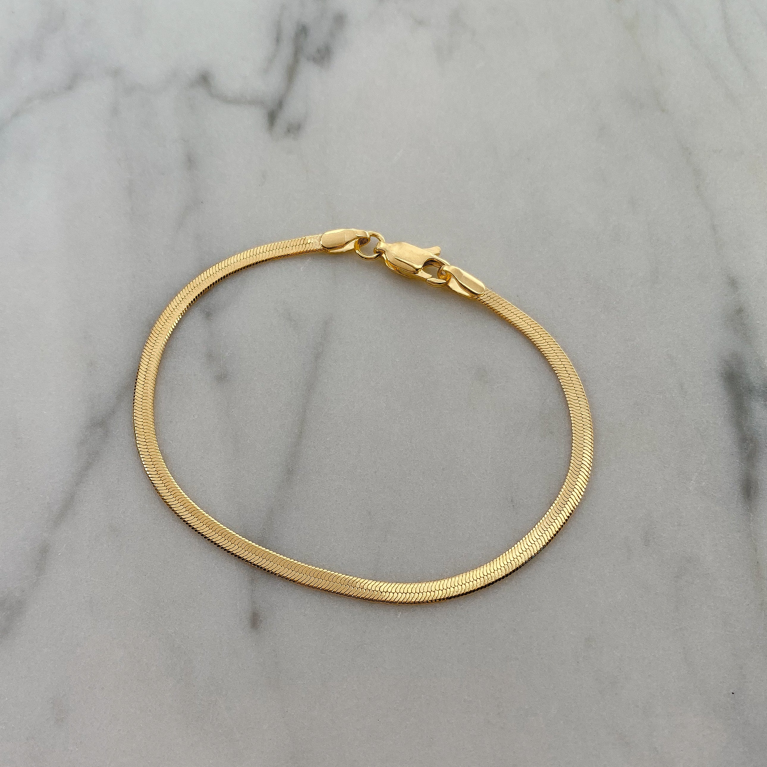 Best selling herringbone style to maximize your wrist game. The ideal style to stack any style with. Finally, a long-lasting gold bracelet you never have to take off. This style is perfect to pair with our colored enamel Dot Chain Bracelets.