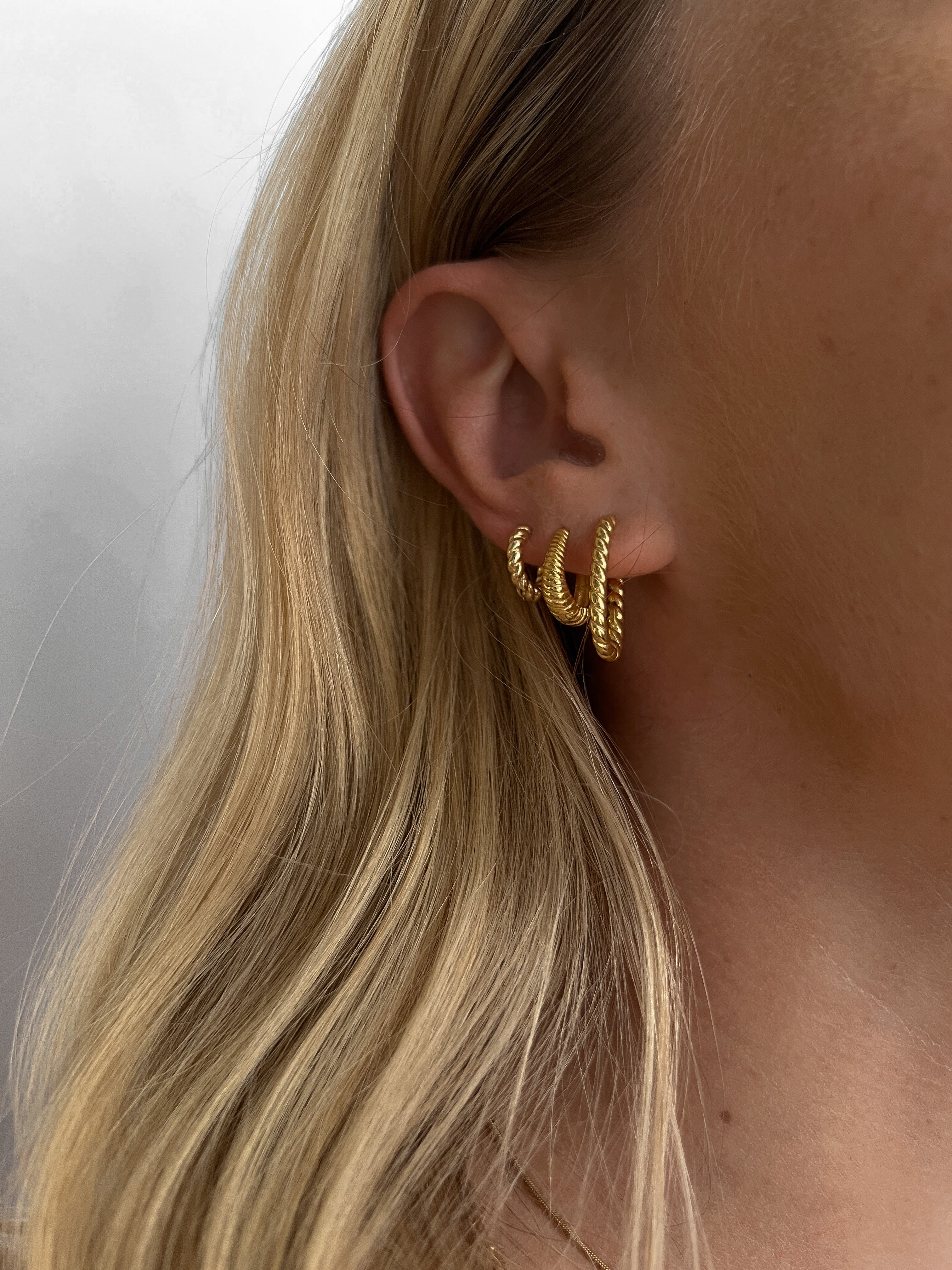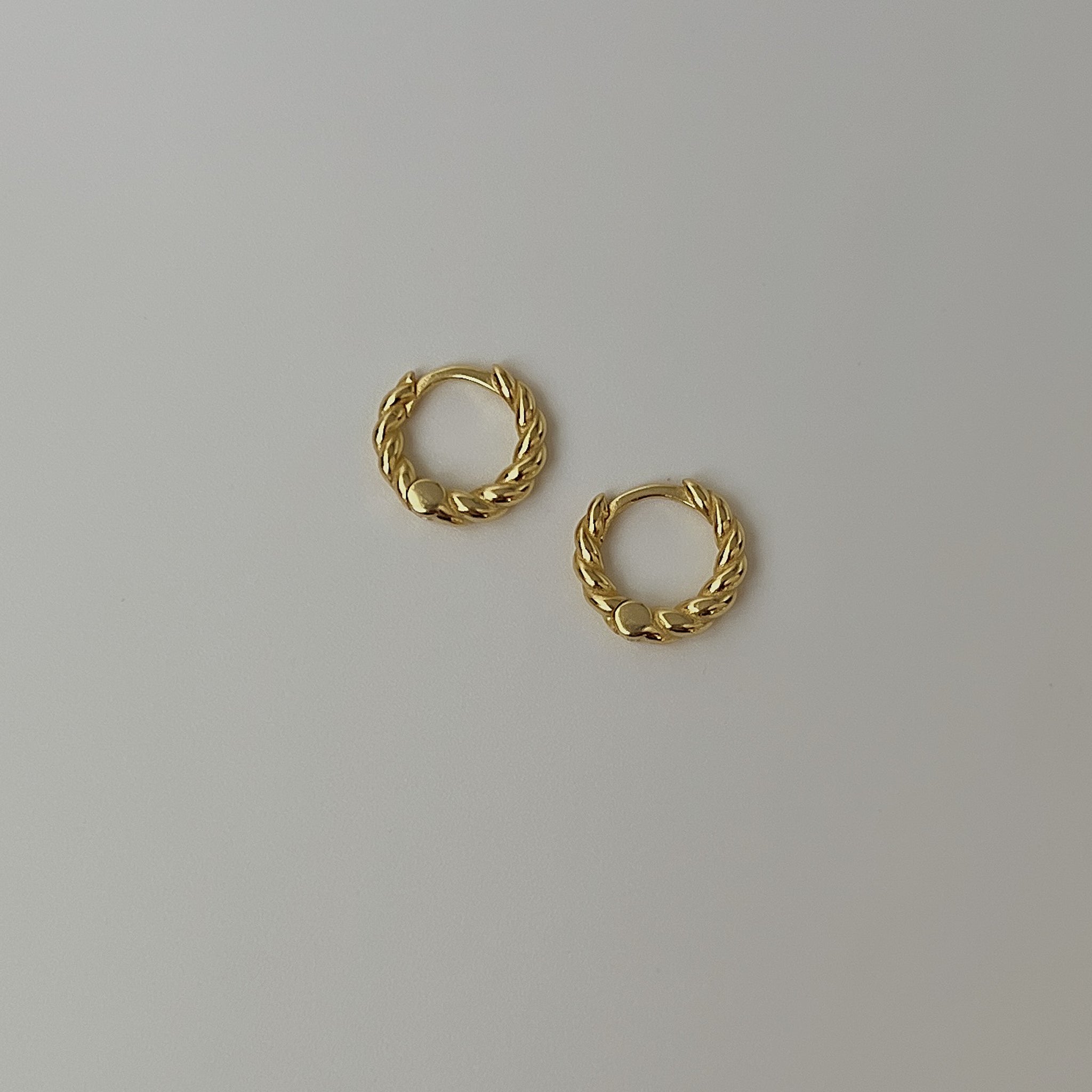 This is a perfect small hoop for your first or second hole that you can mix and match with other earrings. It features a classy rope-style design that adds richness in texture and sophistication. This versatile mini hoop is a go-to option that can be worn anywhere and pairs well with any outfit.