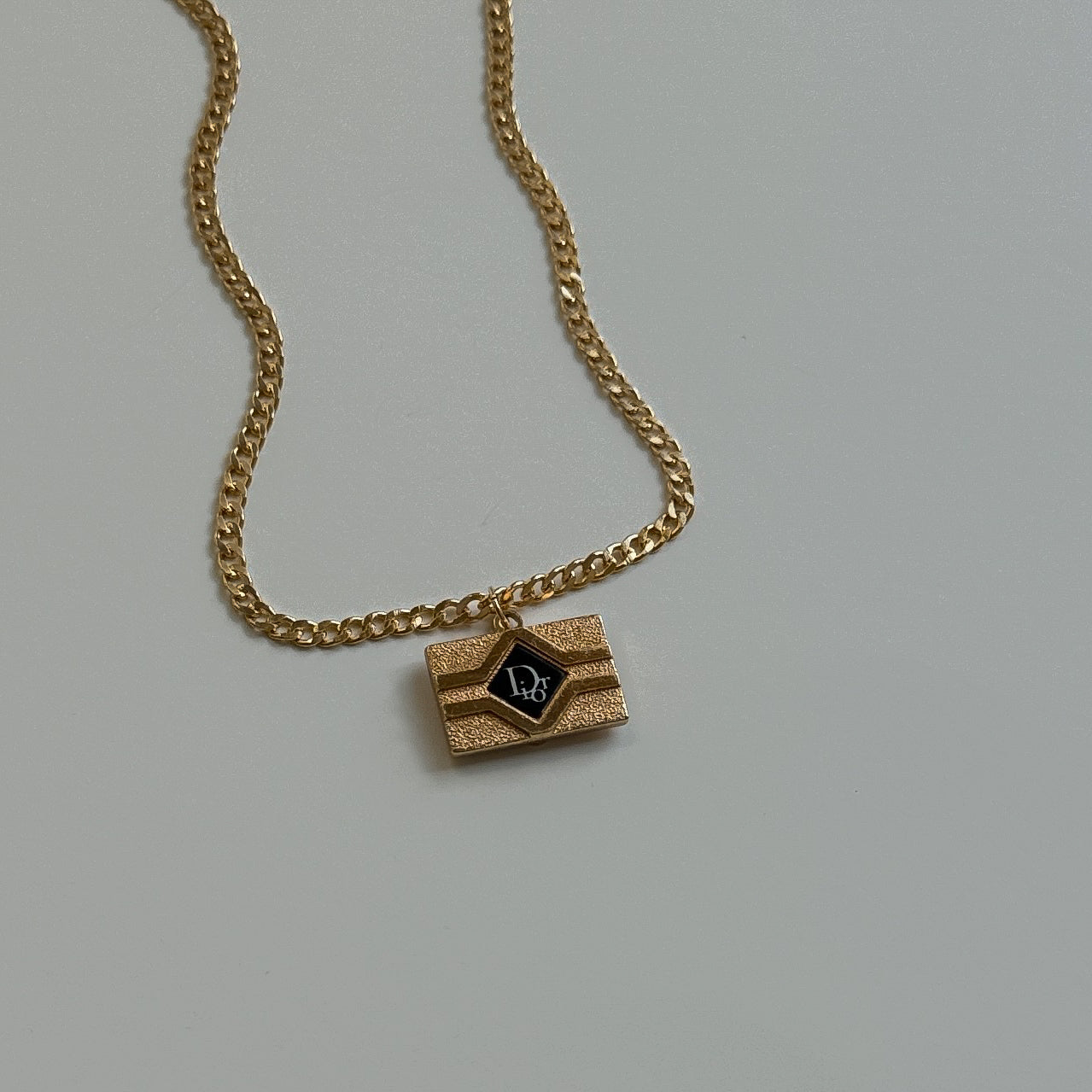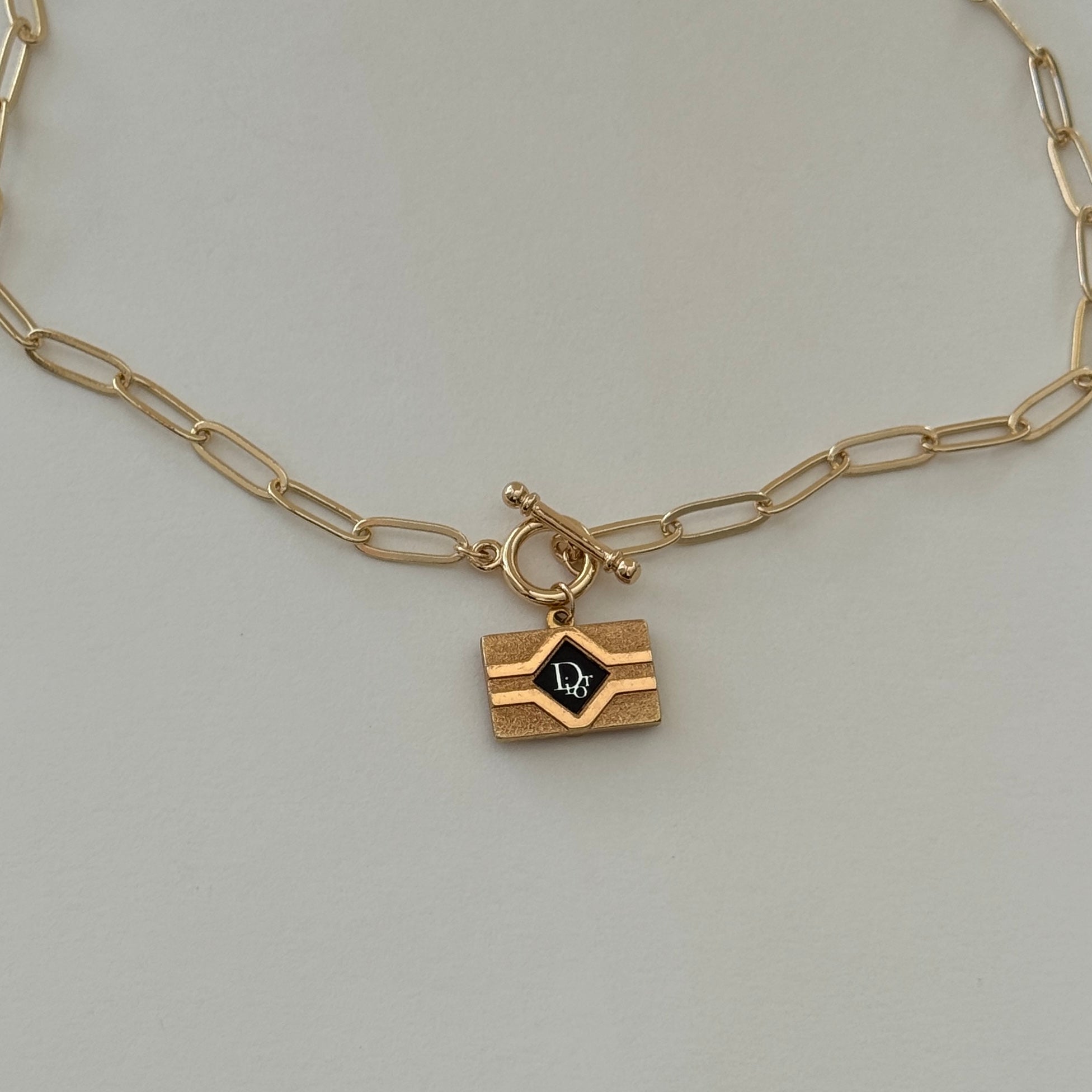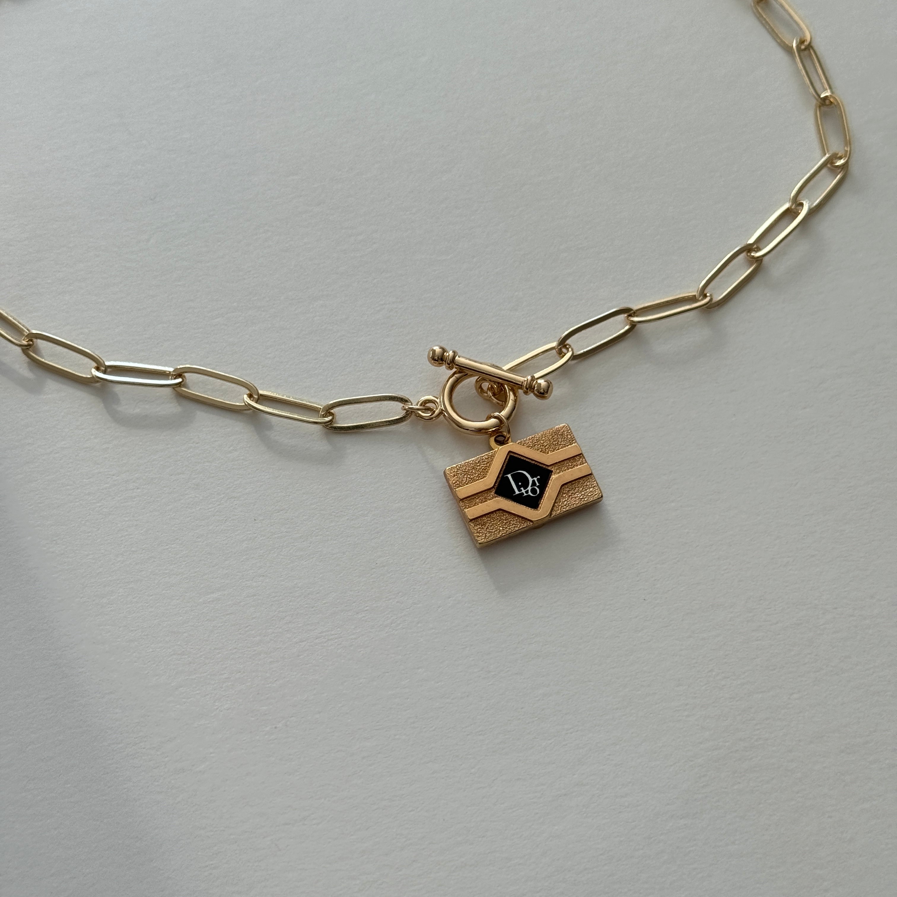 Only one available. This Dior creation is a testament to our commitment to offering unique, luxurious jewelry. Recreated from authentic vintage Dior cufflinks this pendant is a nod to classic sophistication, making it a must-have for those cherishing understated luxury. The contrasting details make this piece pop.