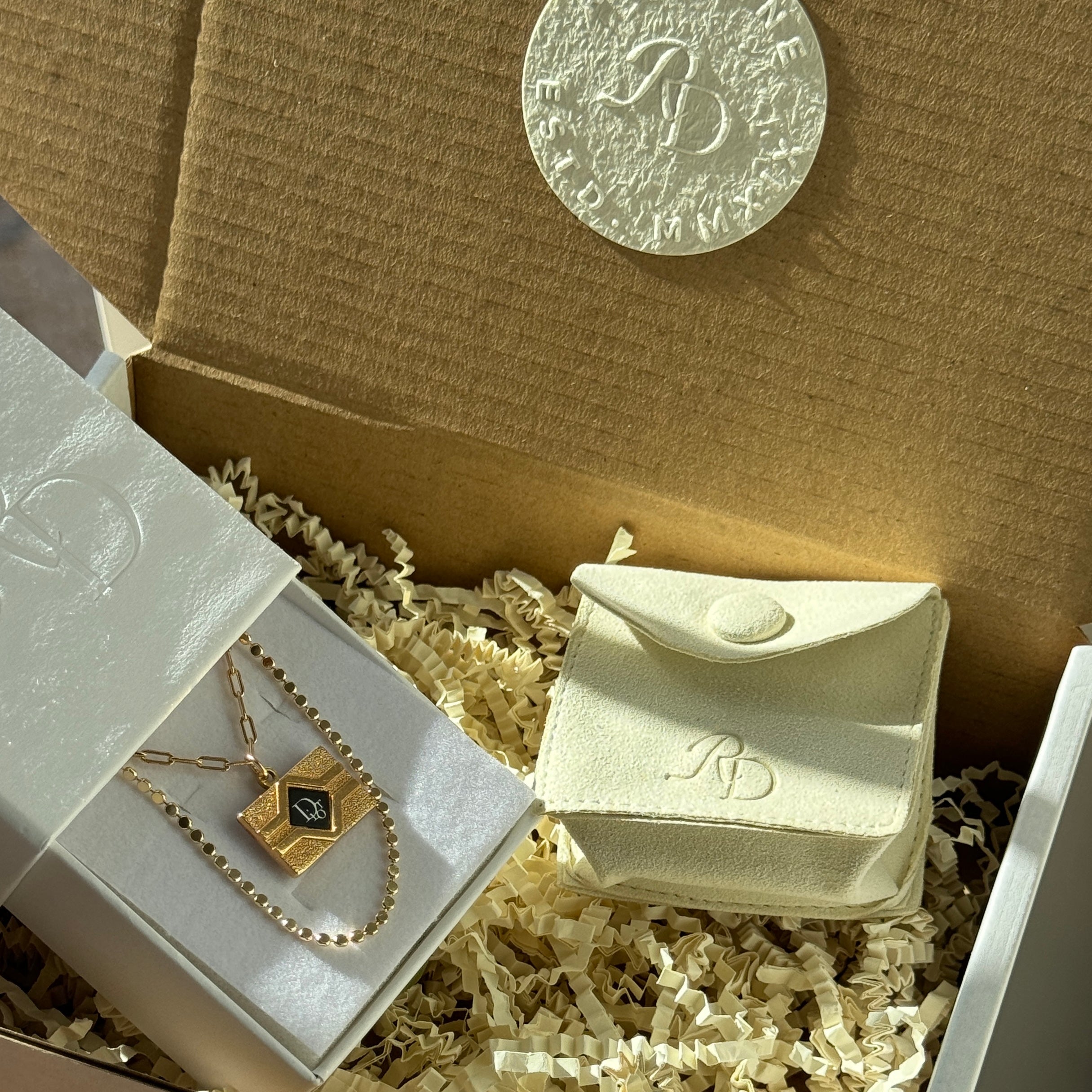 All orders are thoughtfully packaged in custom ReDunne gift boxes or cloth bags and shipped in eco-friendly recyclable packaging.