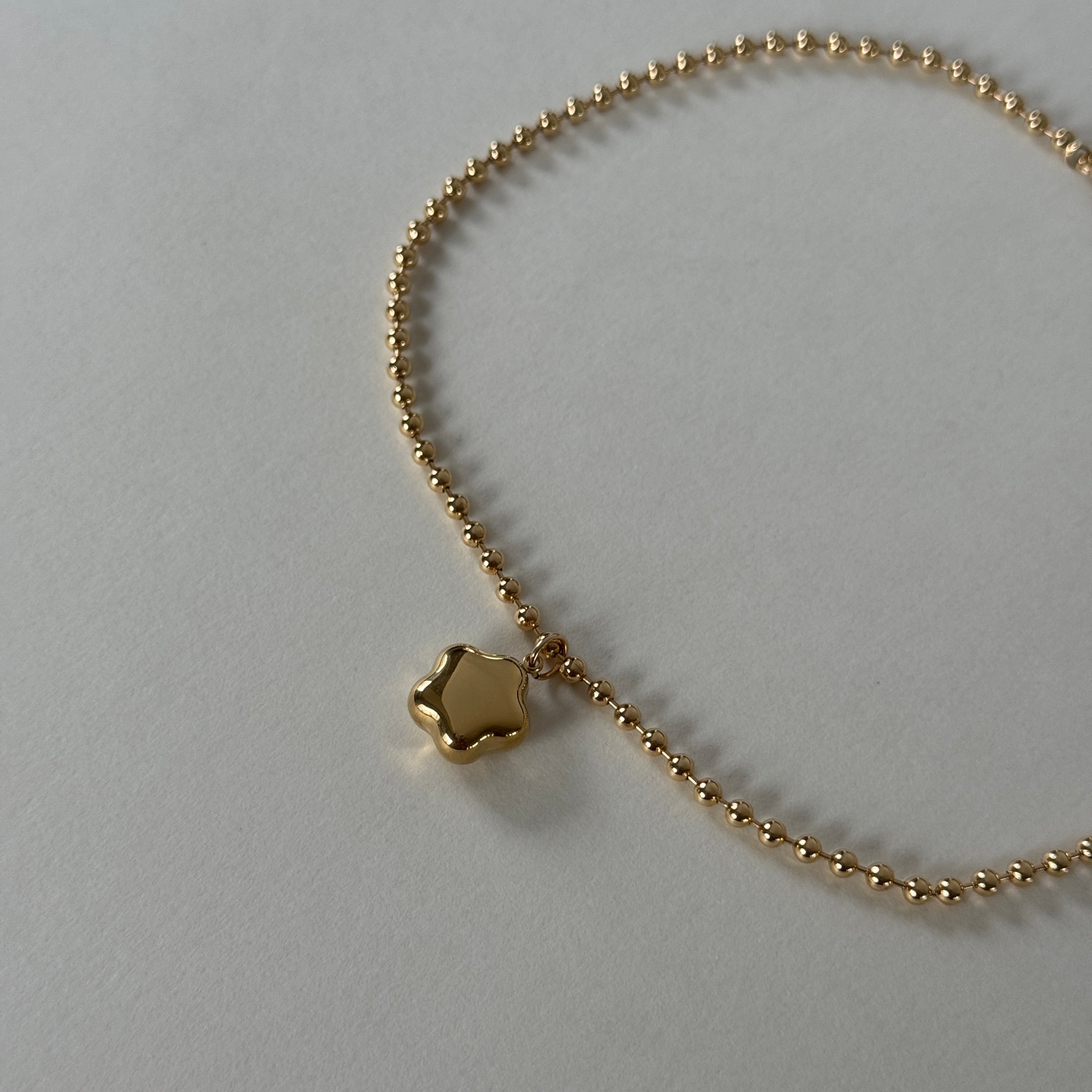 A little charm, a lot of shine. This puffed star pendant floats on our gold filled 3mm max ball chain choker—playful yet refined. Lightweight with just the right dose of attitude, it adds dimension to any stack or stands out beautifully on its own.