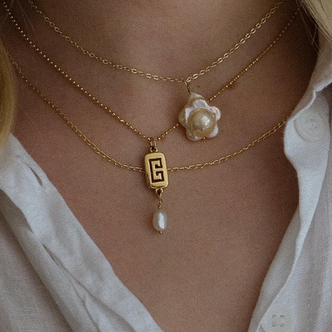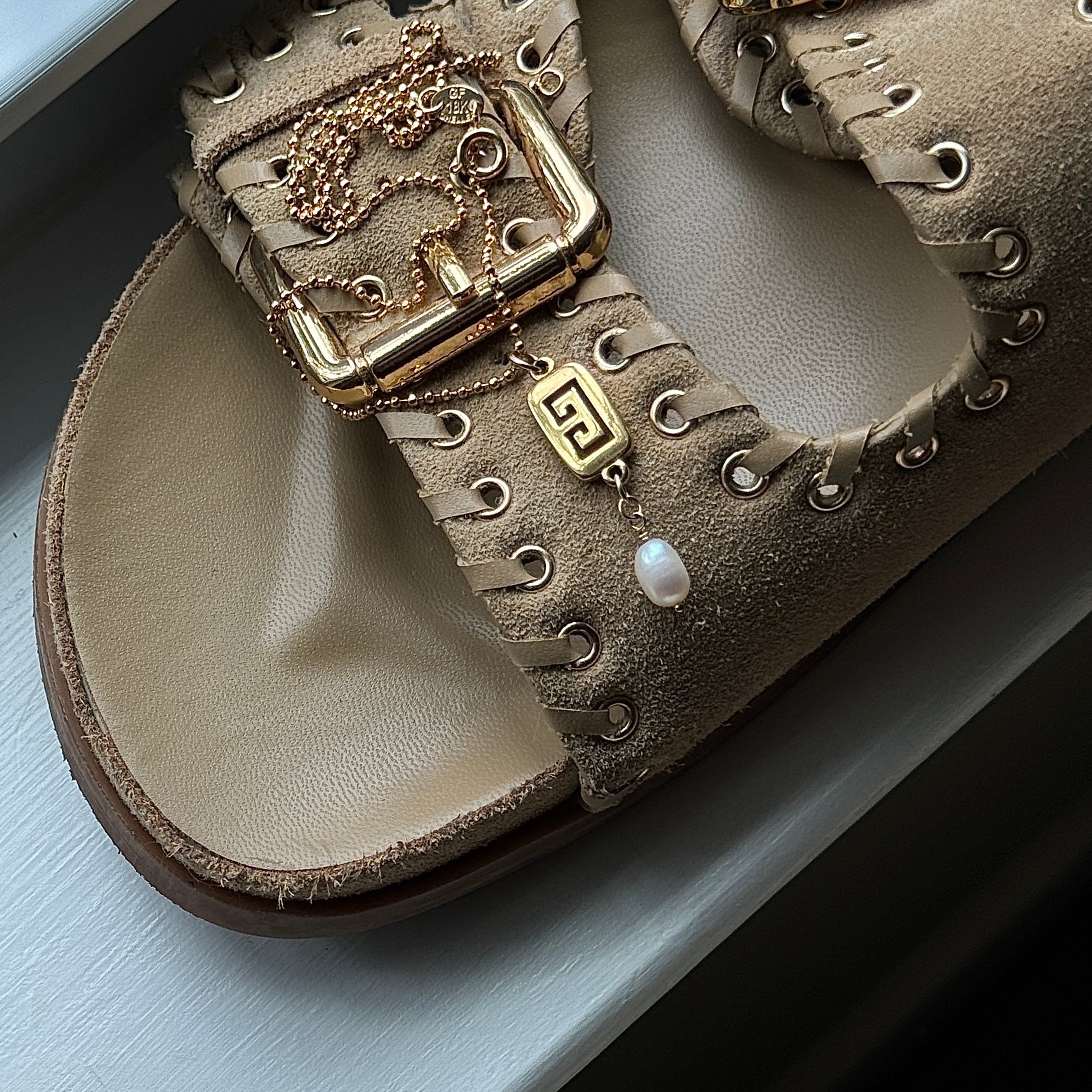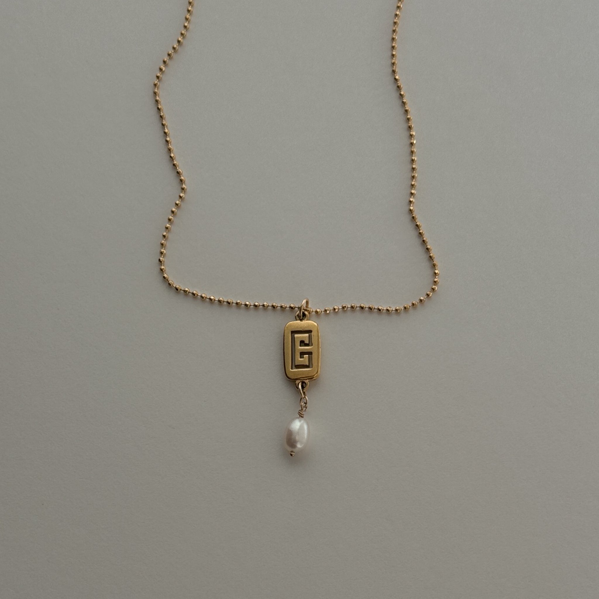 Experience the unique charm of a thoughtfully recreated vintage Givenchy drop pearl pendant necklace. Featuring, authentic Givenchy charm slung on our thin Max 1.5mm gold-filled ball chain and complimented by a petite freshwater keshi pearl. A unique and elegant necklace that no one else will have.