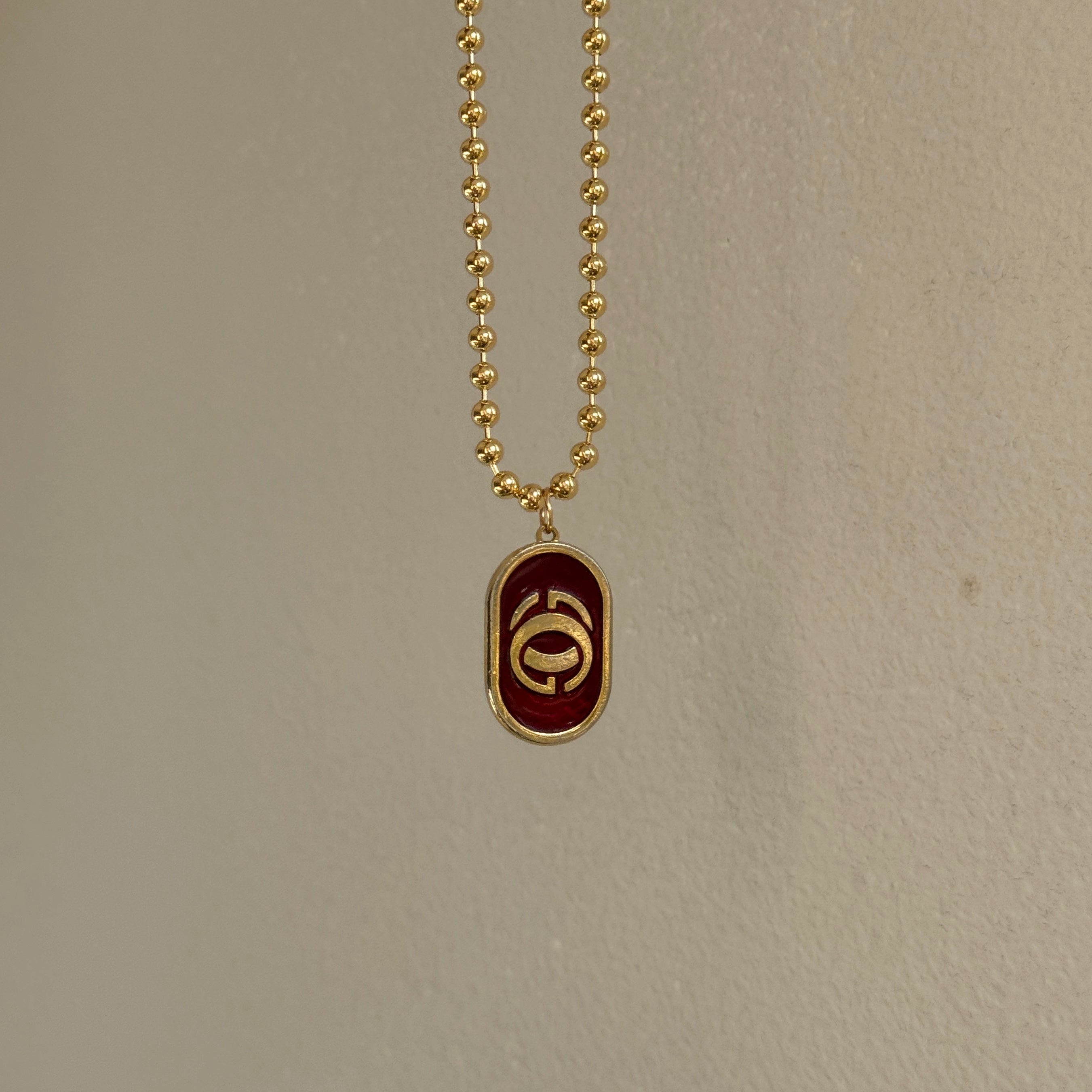 Vintage Gucci Rouge Enamel Emblem Necklace