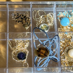 As with all fine things in life, you should take care to protect your jewelry. To keep your vintage treasures shining, a little TLC goes a long way. We believe jewelry should be worn daily (we wear ours!) but remember, some moments call for caution. To preserve their sparkle, slip off your vintage pieces before showers, pools, or workouts, and when applying perfumes or lotions. When they're not adorning you, tuck them lovingly into a clean, dry pouch or box.