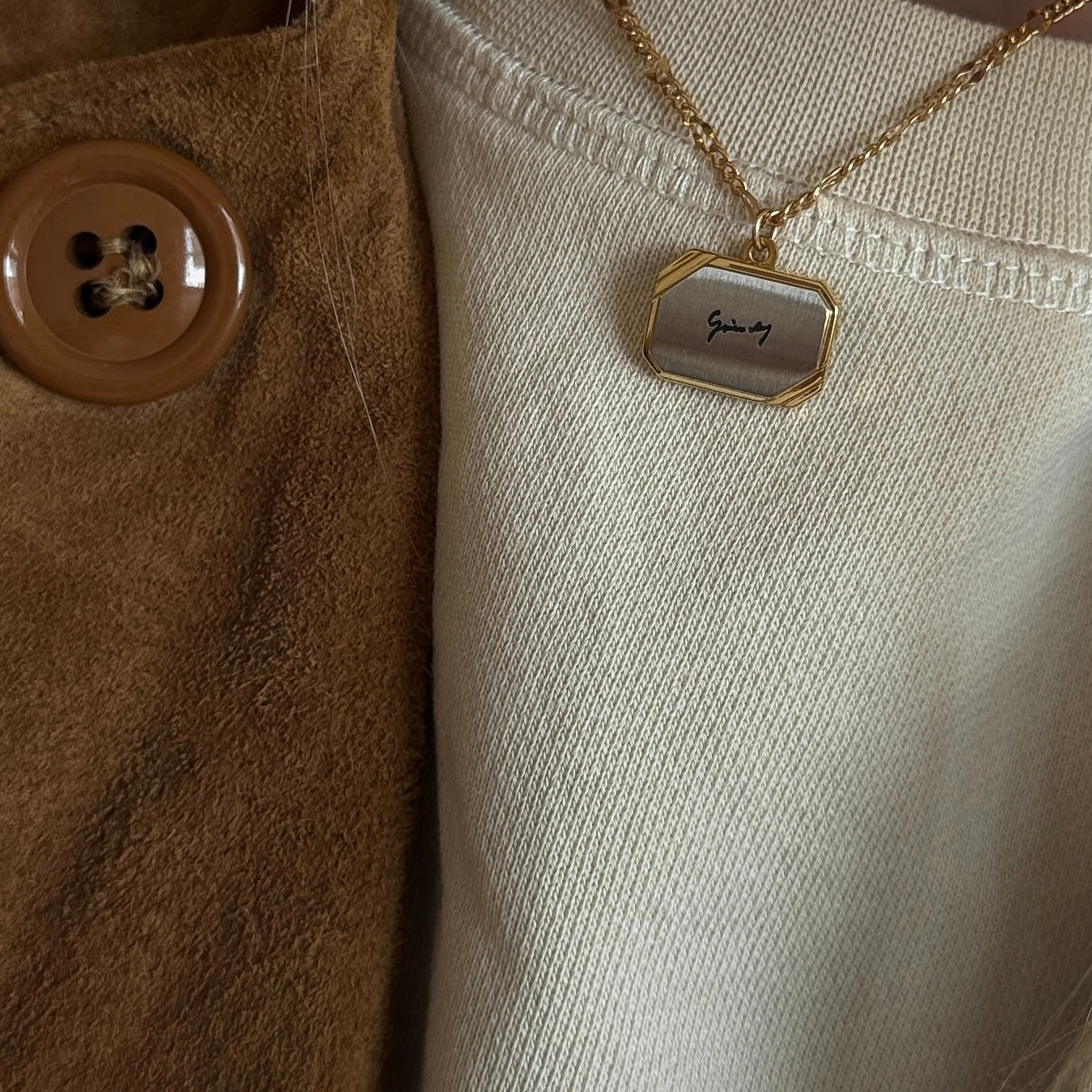 This exquisite Vintage Givenchy necklace reimagines a timeless two-tone mixed metal script logo cufflink as a captivating statement piece. Merging traditional elegance with contemporary flair, this necklace exudes an air of exclusivity. Revived to be an everyday casually cool neck stack addition.