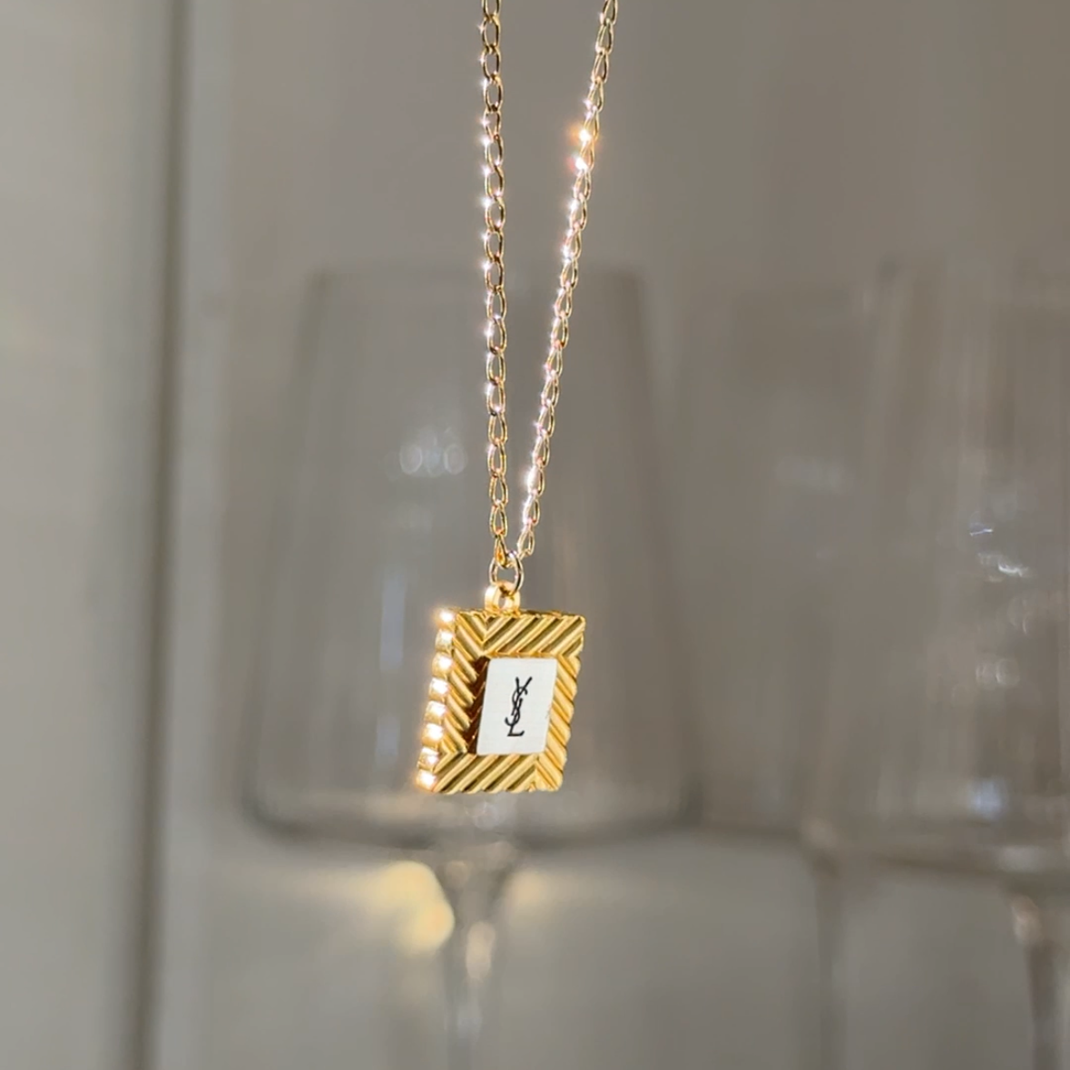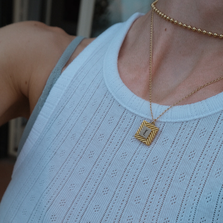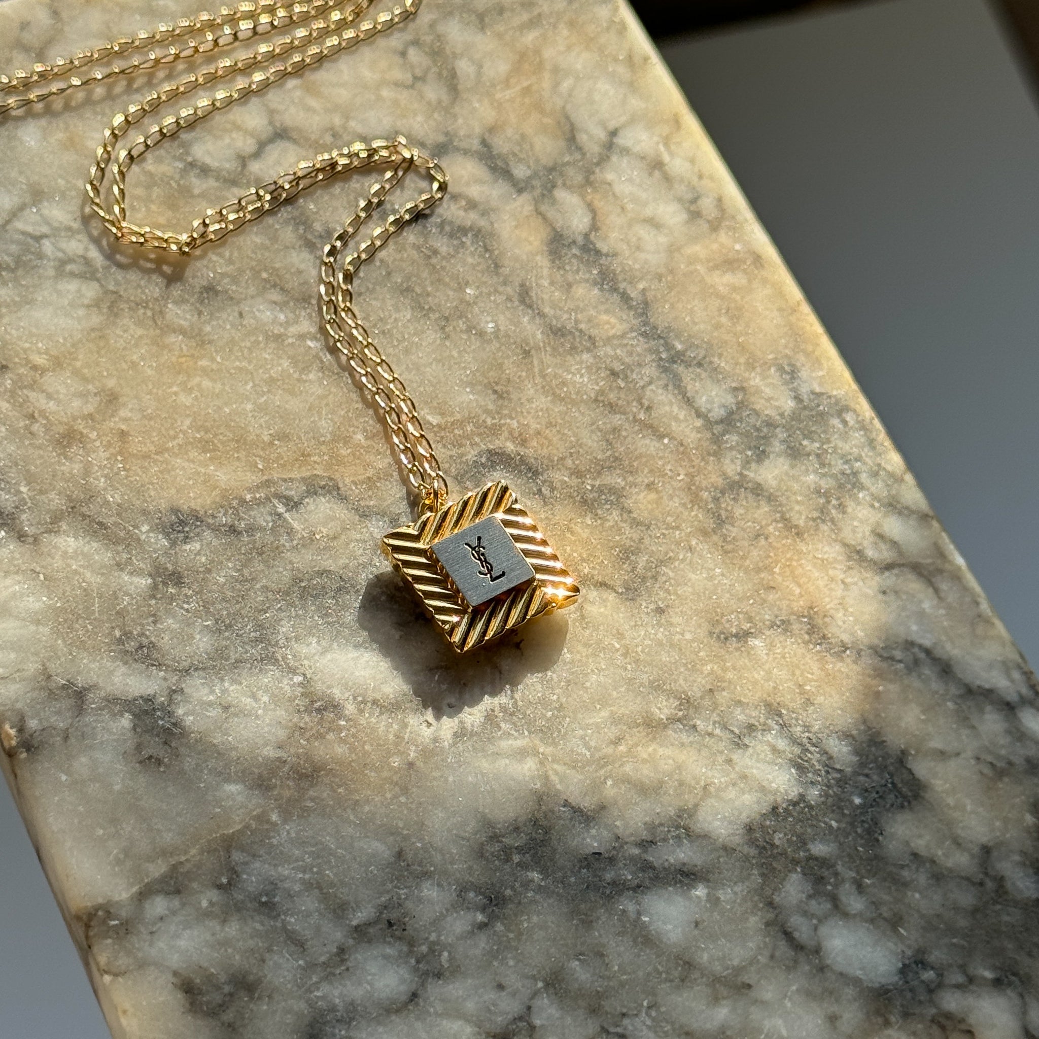 This YSL pendant's contrasting details are unmatched and unique, making this the perfect necklace to elevate any ensemble. Pair this eye-catching two-tone pendant necklace with any of our staple layering chains, we love it paired with our Max Ball Chain.