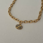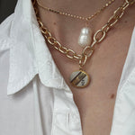 Suspended from a chunky gold-filled chain, this necklace is downright awesome.
