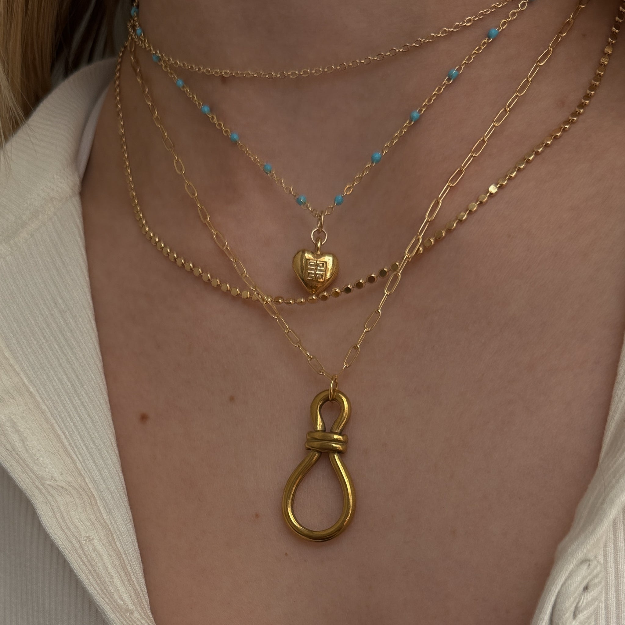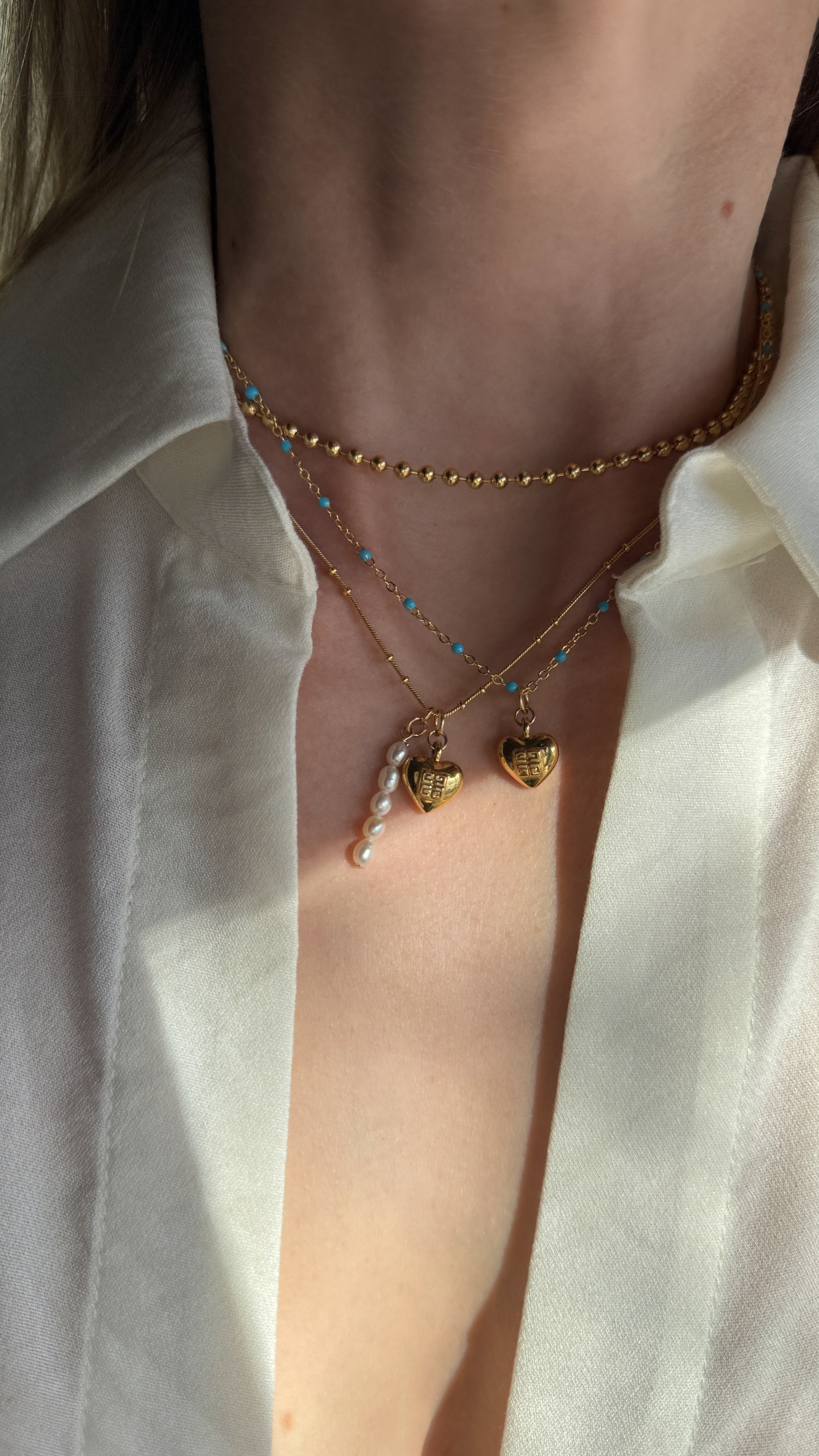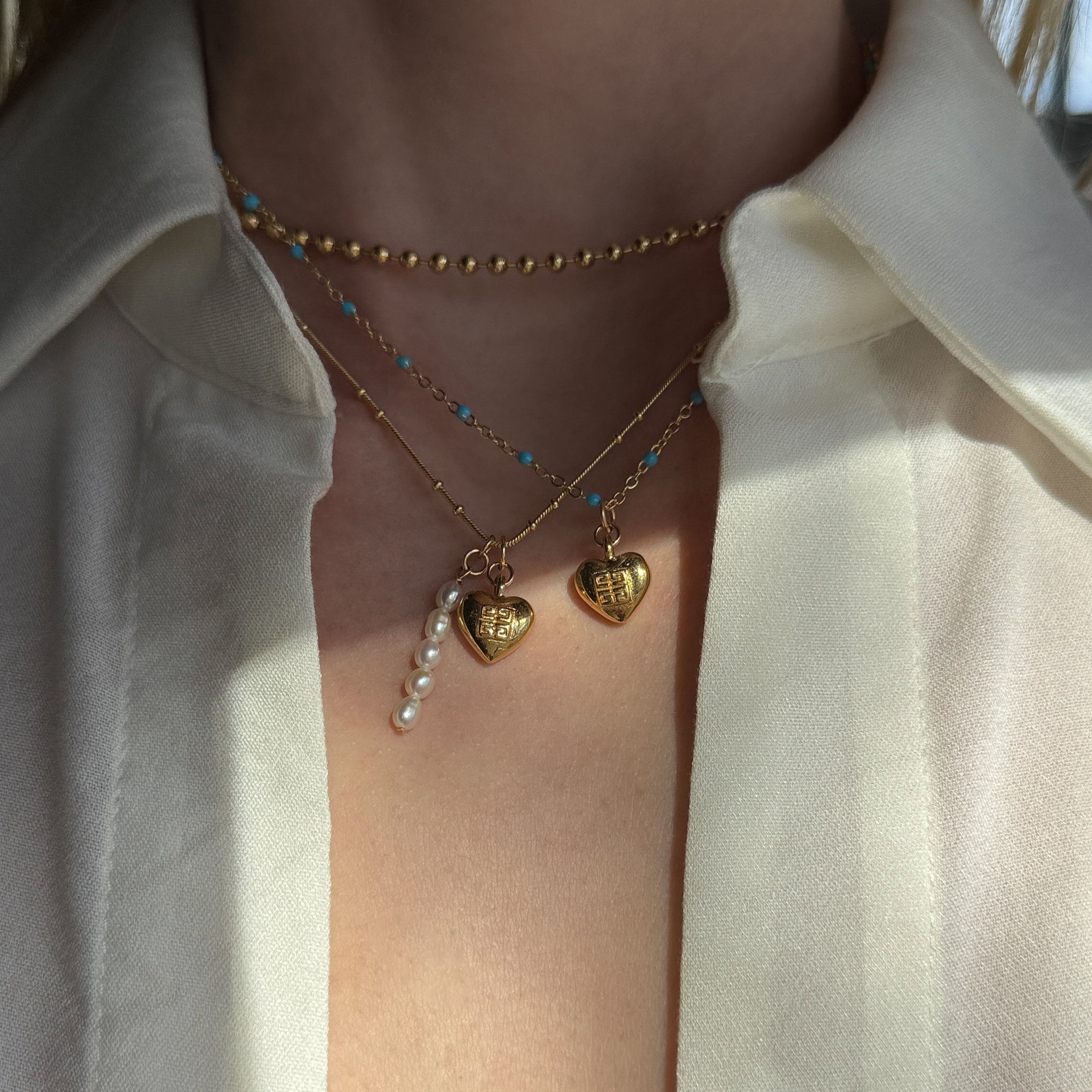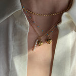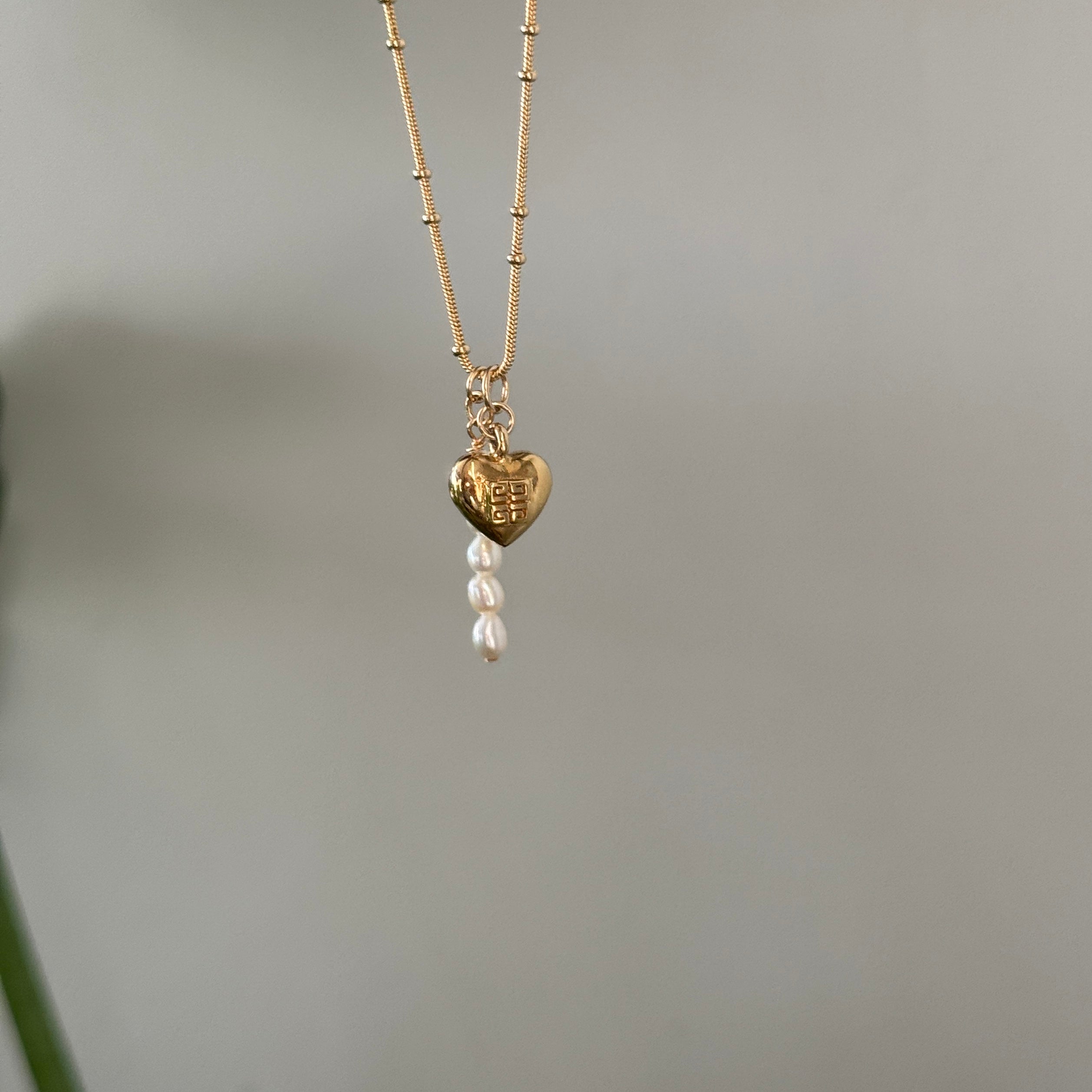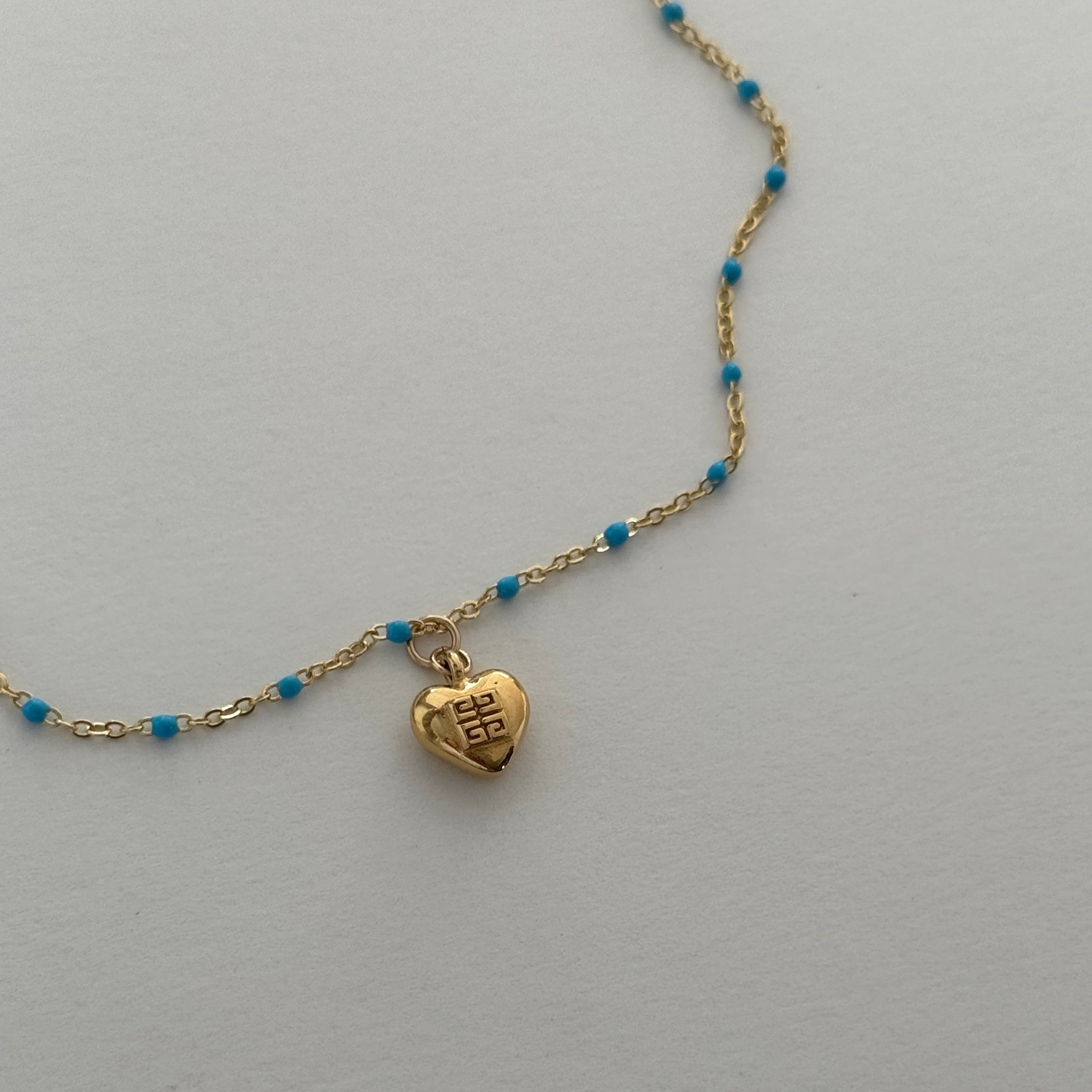A vintage heart with a fresh perspective. This perfectly petite mini Givenchy heart charm necklace, recreated from a pair of vintage earrings and given new life. Delicately suspended from our dainty turquoise gold-filled satellite chain to create a truly unique piece.