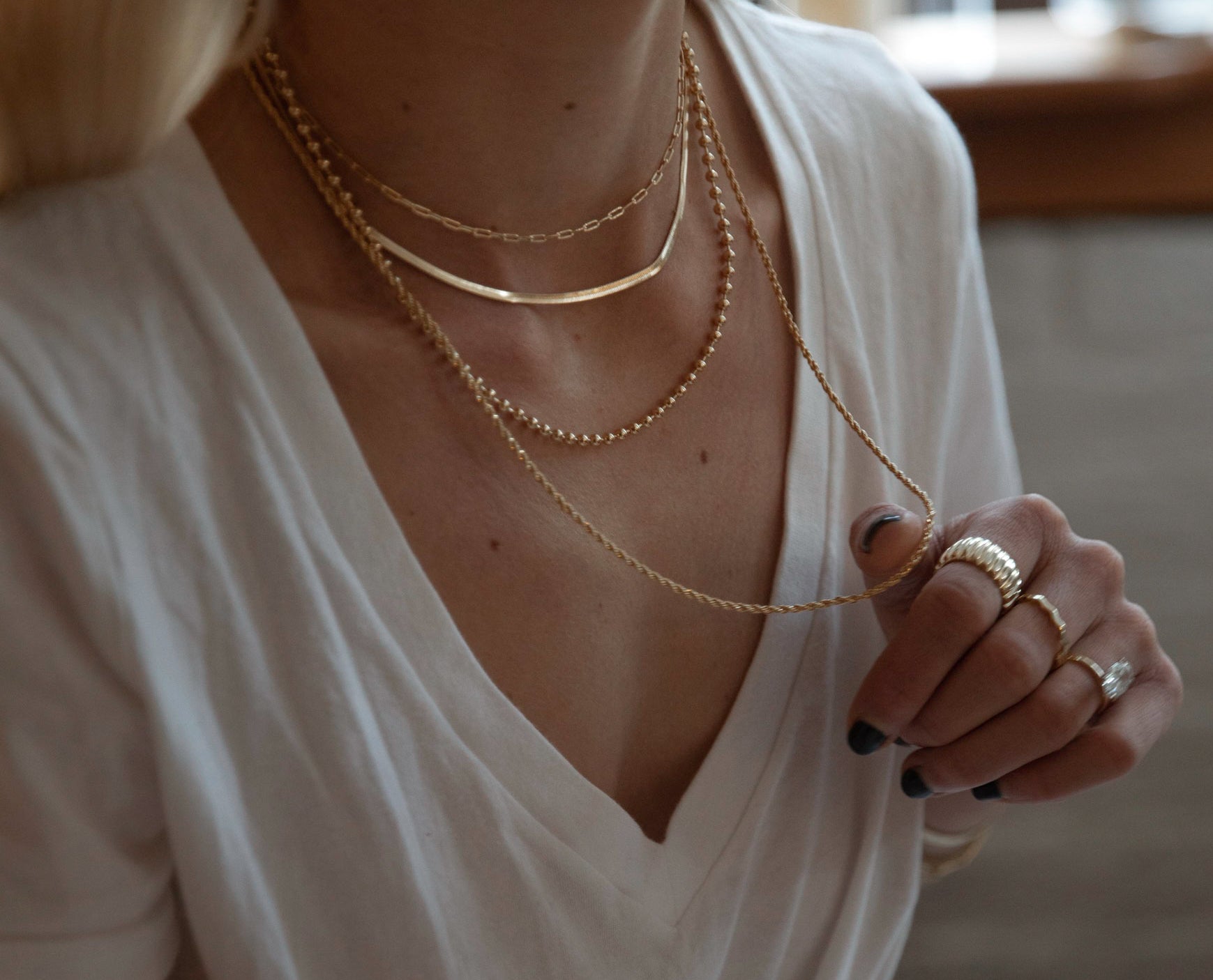 The largest of the ball chain gang. Add a modern edge and layer up with our loved 18k gold filled Max ball chain. Put this chain to work as you see fit. Ball chains will forever be one of our favorite layering staple styles.