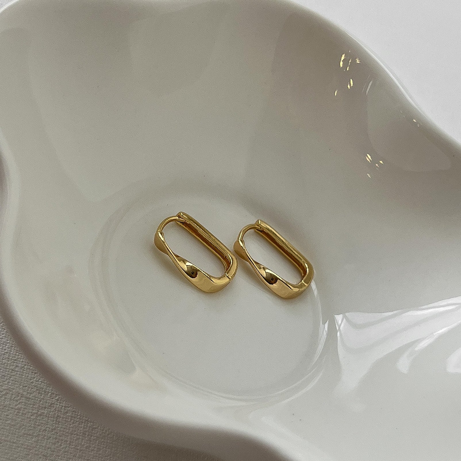 These lightweight and elegant rectangular twist hoops provide a subtle twist on a classic everyday favorite. These mini hoops offer a timeless look that will enhance your ear stack beautifully. They're a versatile style you'll want to wear every day.
