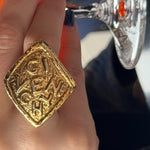 Recreated from an authentic vintage Givenchy clip-on earring, this extraordinary statement ring captures the essence of timeless luxury reimagined. The bold three-dimensional lettering creates an undeniable presence on your hand, a whisper of haute couture history transformed into wearable art. This is where classic elegance meets fearless reinvention. Truly one-of-a-kind—a treasure that exists nowhere else.